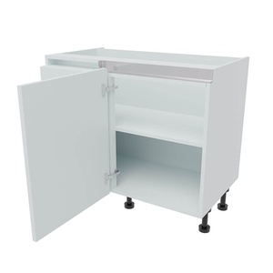 Kitchen corner base units come in two types, either L-Shape options with 2 connecting doors and angled door options or the more popular blank panel versions where the blank part of the cabinet is positioned in the corner space. Many sizes of corner base units are available. Learn more about Kitchen Corner Base Units