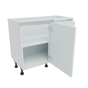 Kitchen corner base units come in two types, either L-Shape options with 2 connecting doors and angled door options or the more popular blank panel versions where the blank part of the cabinet is positioned in the corner space. Many sizes of corner base units are available. Learn more about Kitchen Corner Base Units