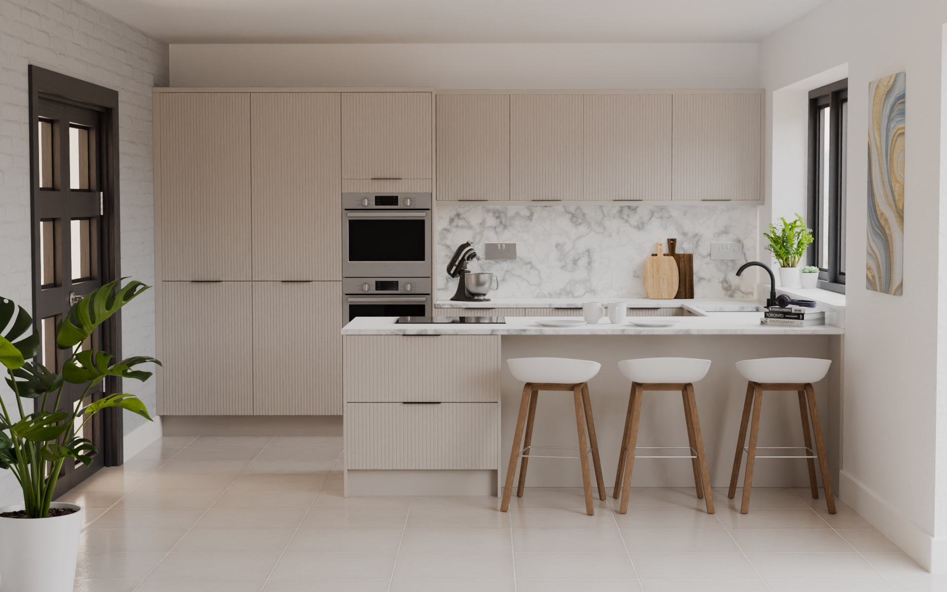 Modern kitchens are characterised by clean lines, innovative storage solutions, and high-tech appliances. They often feature neutral colour or white kitchen palettes and materials like stainless steel and quartz, creating a space that is both functional and visually appealing.