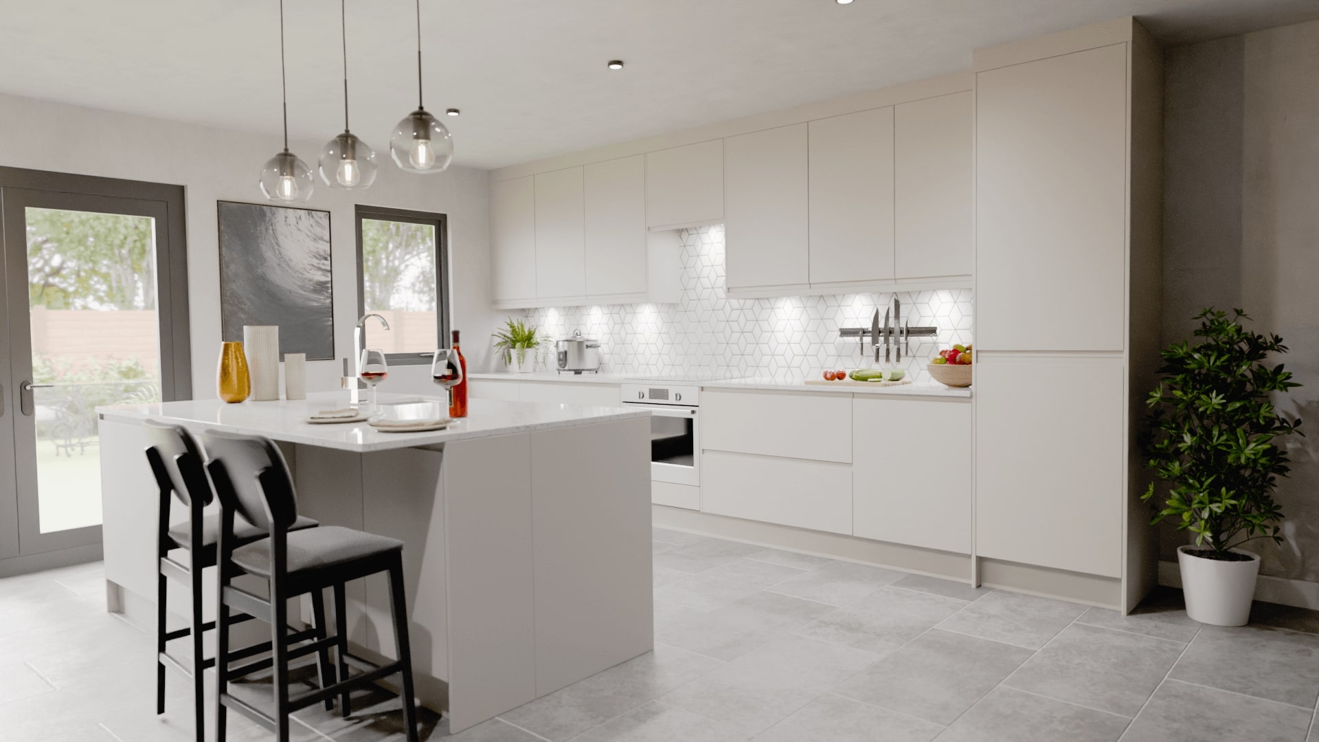 The Denia range combines a painted matt surface with True Handleless profiles to create an ultra modern finish.