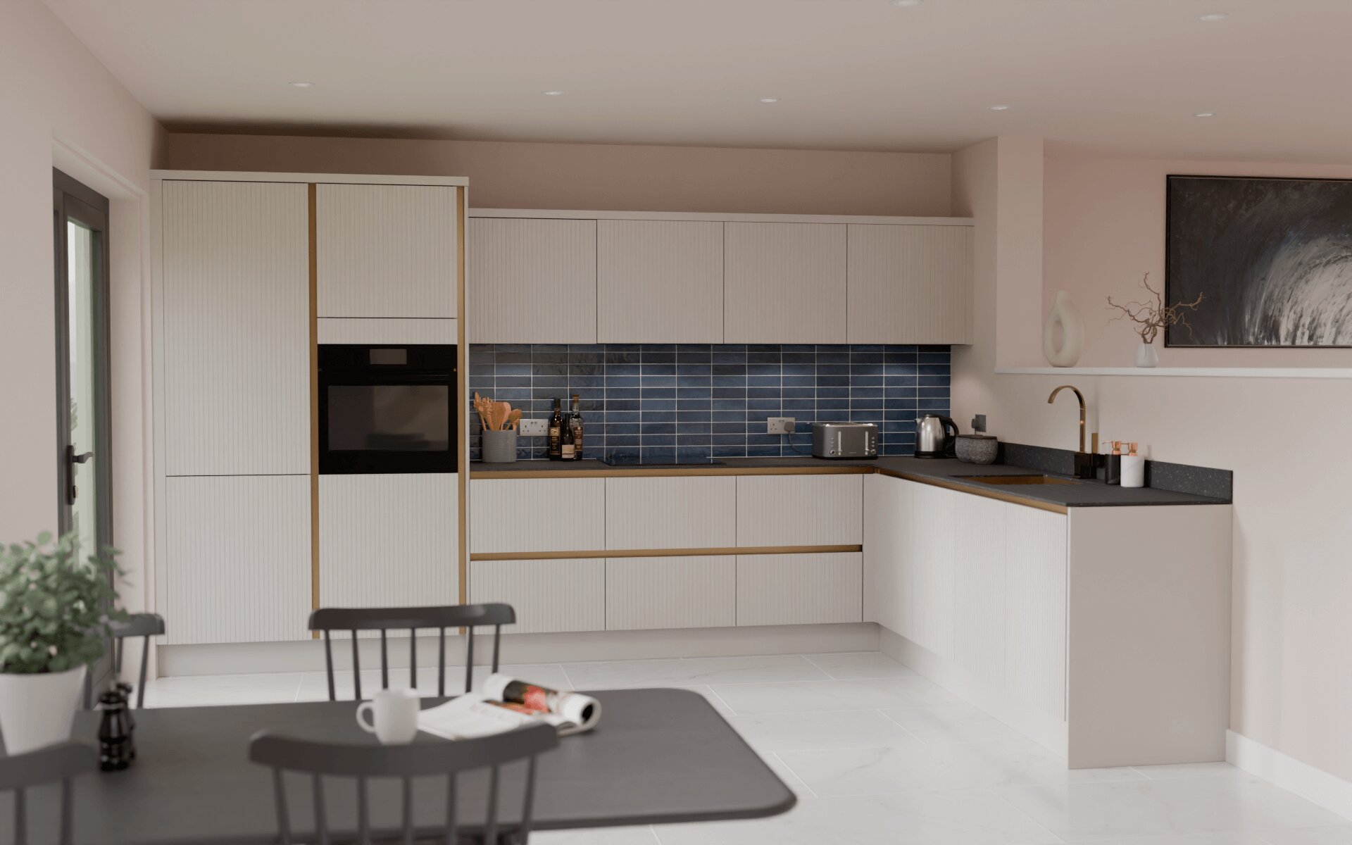 True Handleless take the concept of handleless design a step further by incorporating recessed channels behind the door and drawers. This allows for easy opening whilst maintaining a seamless, ultra modern kitchen aesthetic.