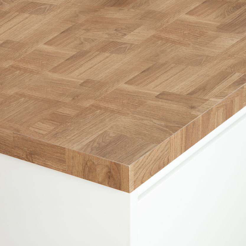 A subtle colour variation and intricate grain pattern add authenticity to this wood block laminate worktop and perfectly replicates the look of a solid wood surface. These durable surfaces are enhanced by a textured-matt finish and a square edge to create a fantastic focal point in your kitchen.